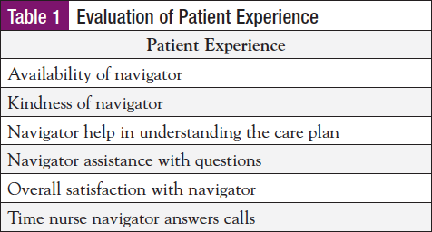 It is important to educate patients about their cancer to enable them to make informed decisions about their care. The navigator not only provides emotional support to the patient but also to the patient’s family and caregiver. The LCNN enhances patient outcomes and the experience by improving access to and utilization of customized resources to meet their needs. Patient satisfaction is assessed through the use of a survey consisting of 6 questions that evaluate the experience with the navigator (Table 1).