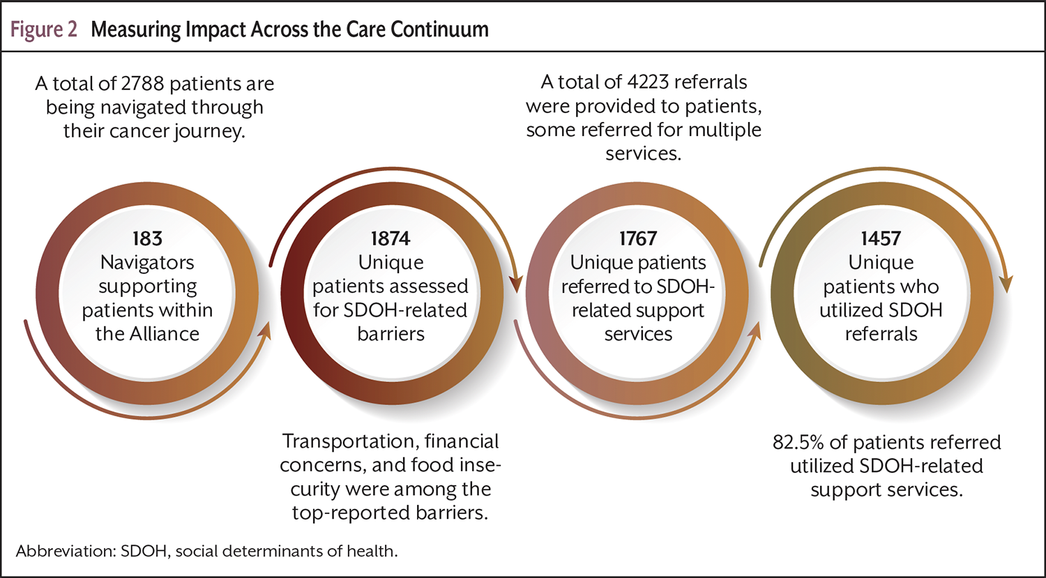 While patient navigation—care coordination service that guides individuals through the inherently complex healthcare system—has been in place for decades,3 the Alliance distinguishes itself through its deep emphasis on community partnerships. Members of the Alliance collaborate with trusted local organizations to engage populations disproportionately impacted by cancer, cocreating solutions that are informed by the lived experiences and specific needs of each community. In the Alliance’s approach, navigation extends beyond hospital walls into churches, barbershops, libraries, and neighborhood centers, spaces that are woven into the fabric of community life. Although each site has its own tailored strategies and focuses on distinct patient populations, they are united by a shared goal: to ensure that everyone—regardless of background, income, or zip code—has access to lifesaving cancer treatment.