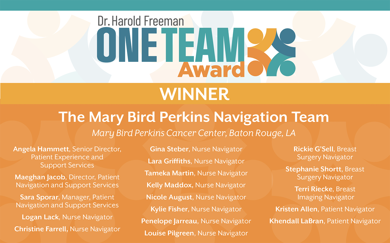 Selecting among such inspiring submissions was no easy task. Yet, the message is clear: excellence in navigation is never achieved alone. The Dr Harold Freeman One Team Award celebrates the strength of working as one, where shared purpose, partnership, and compassion drive lasting impact for patients and professionals alike.