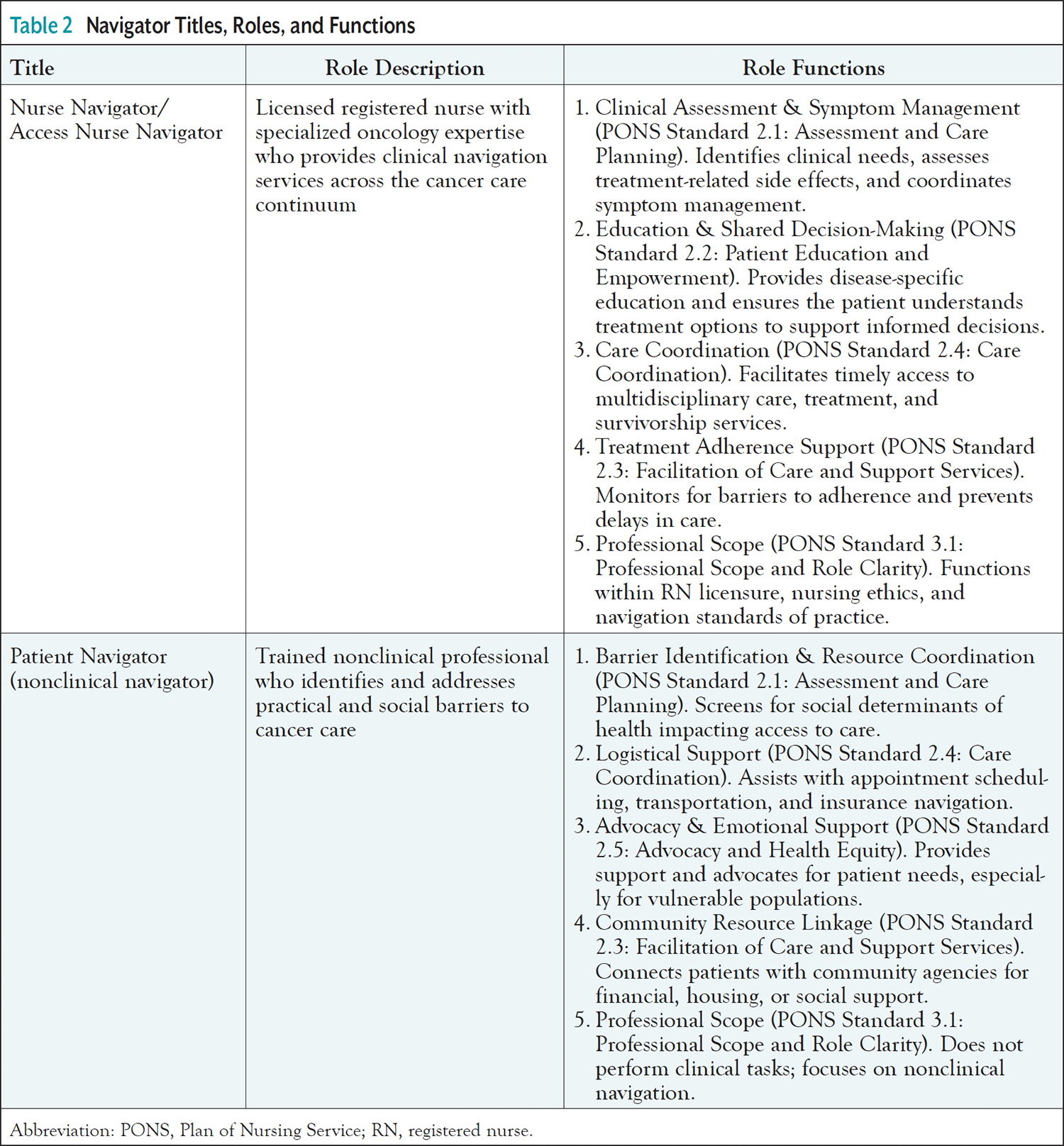 Patients were asked if they experienced each barrier, with an opportunity to provide additional input regarding each answer. Details on all the barriers listed in the dataset are provided in Table 1. The barriers assessment included additional needs that have not been included in traditional SDOH evaluations, such as psychosocial needs, care delivery issues, and cancer education needs. This broader approach was considered a strength of the navigation program because a broader evaluation fosters the identification of barriers to care at each navigation encounter and facilitates the identification of SDOH under the broader umbrella of provision of high-quality patient care. After the initial contact, patients were referred to the hospital where they were receiving care. Nurse navigators at each hospital managed the longitudinal navigation throughout the patient’s treatment journey. Navigators inquired about the other obstacles that were not previously endorsed and continued until the patient did not endorse any barriers or completed treatment. This workflow ensured that all team members operated within their professional scope, clinical and psychosocial concerns were managed by licensed nurses, and practical barriers were addressed by nonclinical navigators trained in resource coordination. Table 2 illustrates each navigator role and functions. This study had 2 aims. The first aim was to describe access barriers and navigation activities, and the second was to evaluate sociodemographic and medical factors associated with access barriers.