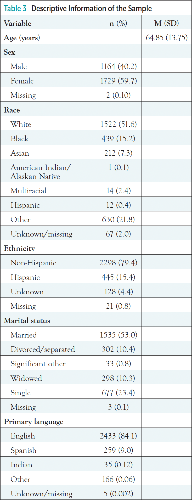 Table 3 presents the sample characteristics. About 60% of the sample was female, and 53% were married. The average age was about 64 years. Race was 51.6% White, 15.2% Black, 7.3% Asian, 2% multiracial, 0.1% American Indian/Alaskan Native, and 21.8% identifying as “other.” The sample was primarily non-Hispanic (79.4%). The majority identified English as their primary language (84.1%). Approximately 25% resided in areas with higher levels of socioeconomic deprivation ADI ranging from 1-3). As described above, 52 navigators provided navigation services.
