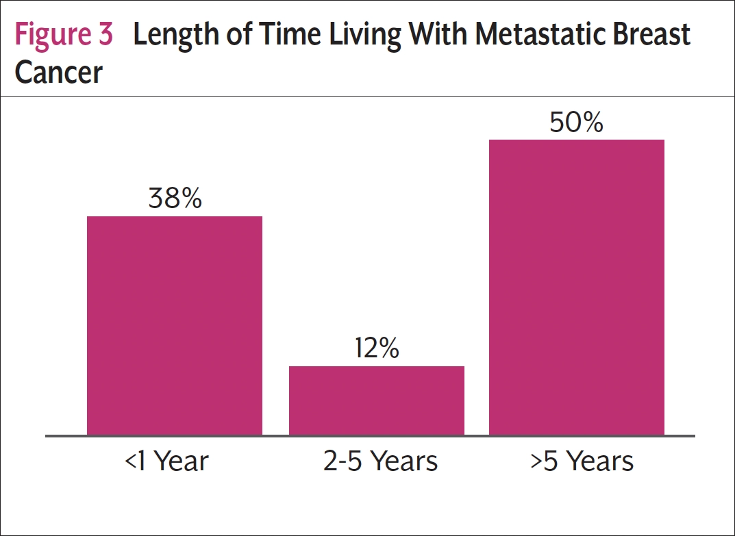 Metastatic breast cancer (MBC; also called stage IV disease) is cancer that has spread beyond the breast and nearby lymph nodes to other parts of the body (most often the bones, lungs, liver, or brain). It is estimated there were more than 168,000 women living with MBC in the United States in 2020.1 People living with MBC (the preferred way to identify people in this community)2 face unique challenges relevant to their diagnoses and treatment. For example, they may face underinsurance, especially in states without Medicaid expansion, or barriers to insurance coverage of preferred treatments.3,4 In addition, confusion about health insurance coverage may cause delayed or forgone care if people perceive costs to be high.4 Besides cost, there can be challenges to receiving certain types of healthcare, such as palliative care and clinical trials, when they are not integrated into standard care or are geographically inaccessible.3 People living with MBC have also cited lack of information about MBC as a major concern, exacerbated by unclear access to professional support and communication gaps between providers and patients.3,5