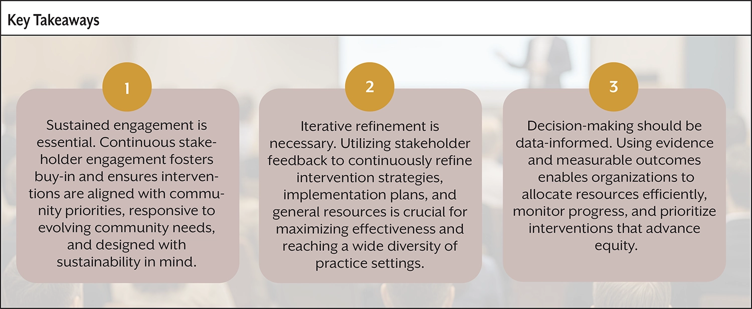 Because most cancer care in the United States is delivered in community settings, the ECE Working Group also intended that the tool be used beyond academic centers, including community-based oncology practices that care for patients with diverse backgrounds and distinct clinical and social needs.5 However, community-based oncology practices often face additional constraints (ie, financial limitations, workforce shortages, technological capacity challenges, and barriers related to care access) that may impact their ability to implement and sustain quality improvement initiatives.6