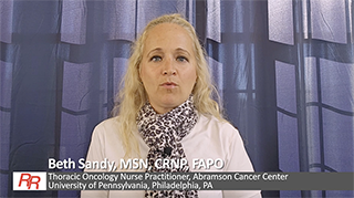 In the final video of this Rapid Reactions series, Beth Sandy, MSN, CRNP, FAPO, discusses data that continue to favor first-line amivantamab plus lazertinib over osimertinib in patients with EGFR-mutant advanced non-small cell lung cancer after a median of 31 months of follow-up.